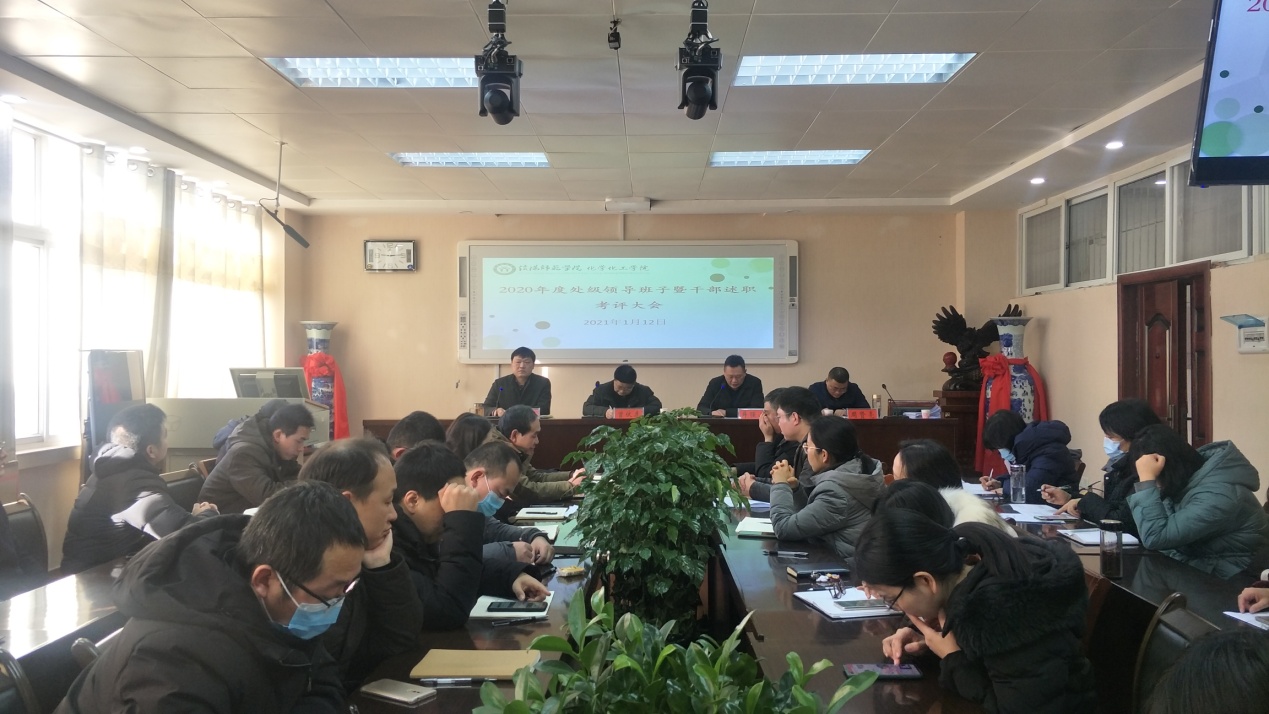 根据《信阳师范学院处级领导班子和处级干部2020年度考核工作方案》〔2020〕40号文件通知安排,2021年1月12日,beat365正版唯一官方网站处级领导班子和处级领导干部2020年度考核大会在化学实验楼407会议室召开,学校第二考核组组长、党委委员、统战部长曾伏虎,考核组成员、组织部干部科科长周贤亮等一行,代表校党委考核工作领导小组对beat365官网处级班子、处级干部述职考核测评进行现场指导,学院领导班子和全体教职工参加了会议。考核会由学院党委书记郭鹏主持。