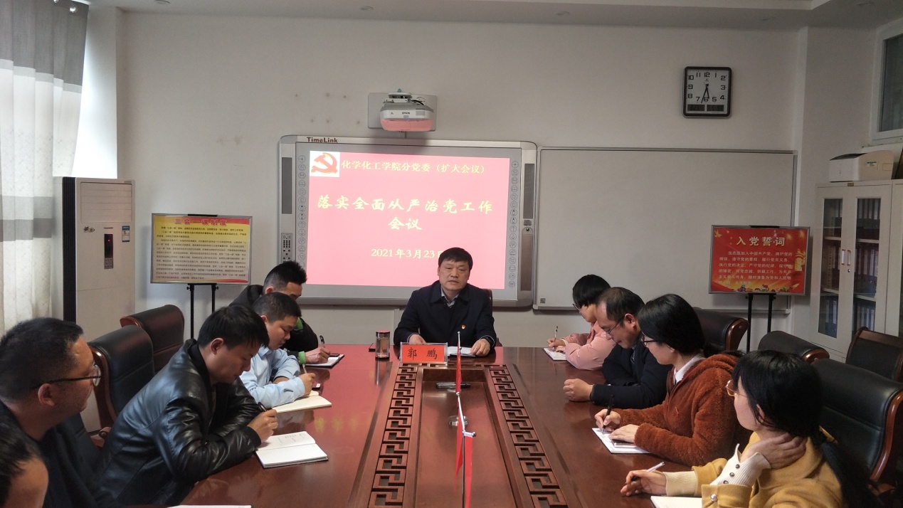 为深入学习贯彻十九届中央纪委五次全会、十届省纪委六次全会和教育系统全面从严治党工作视频会议、校党委2021年全面从严治党工作会议精神,3月24日下午5点,学校理科楼全校中层干部大会后,beat365正版唯一官方网站迅速召开分党委扩大会议,及时学习传达贯彻学校全面从严治党工作大会精神。学院分党委书记郭鹏主持并讲话,所属14个师生党支部书记、副书记全体同志参加会议。
