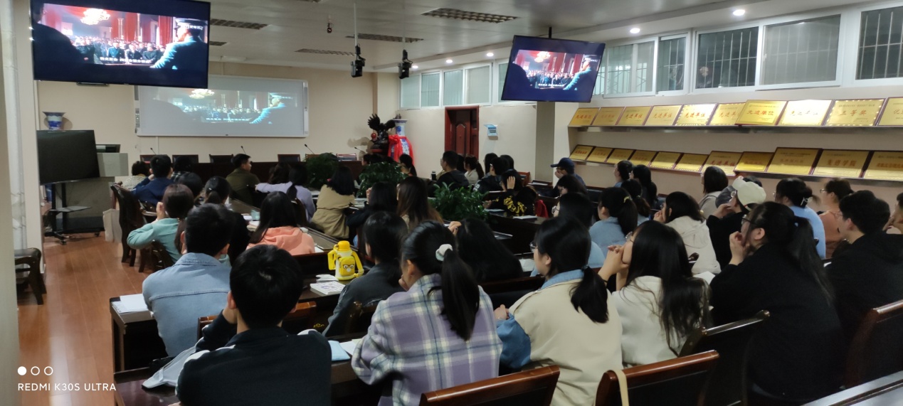 为庆祝中国共产党建党100周年,3月30日晚,beat365正版唯一官方网站分党委组织2021年上半年57名党员发展对象、第35期党校学员在化学楼407教室集体观看了《建党伟业》。