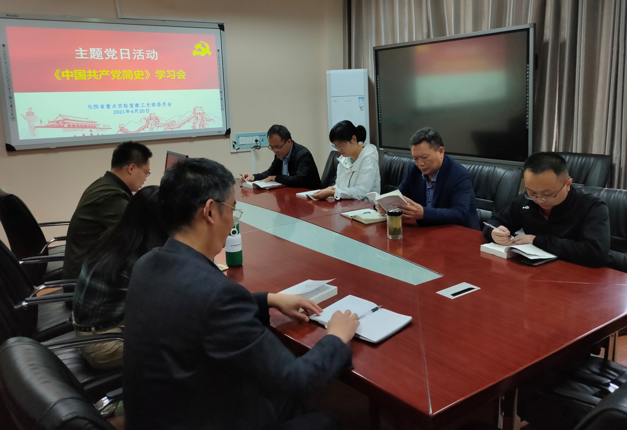 为庆祝中国共产党建党100周年,扎实推进党史学习教育,传承续脉红色基因。4月20日,省重点实验室党支部开展了以学习《中国共产党简史》为主要内容的专题读书研讨会。学院分党委委员、院长井强山,党委委员、非金属材料研究所副所长刘鹏以普通党员的身份参加所在党支部主题党日活动。会议由省重点实验室党支部书记田永尚博士主持。