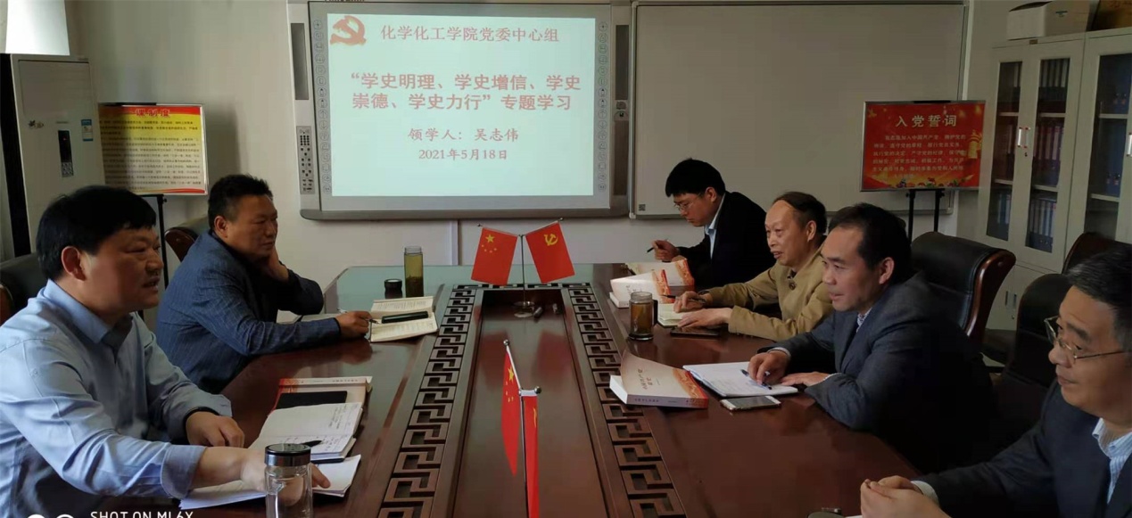 5月18日上午,beat365正版唯一官方网站党委理论学习中心组在实验楼313“党员之家”举行“学史明理、学史增信、学史崇德、学史力行”专题学习研讨会,集体研学《中国共产党简史》。