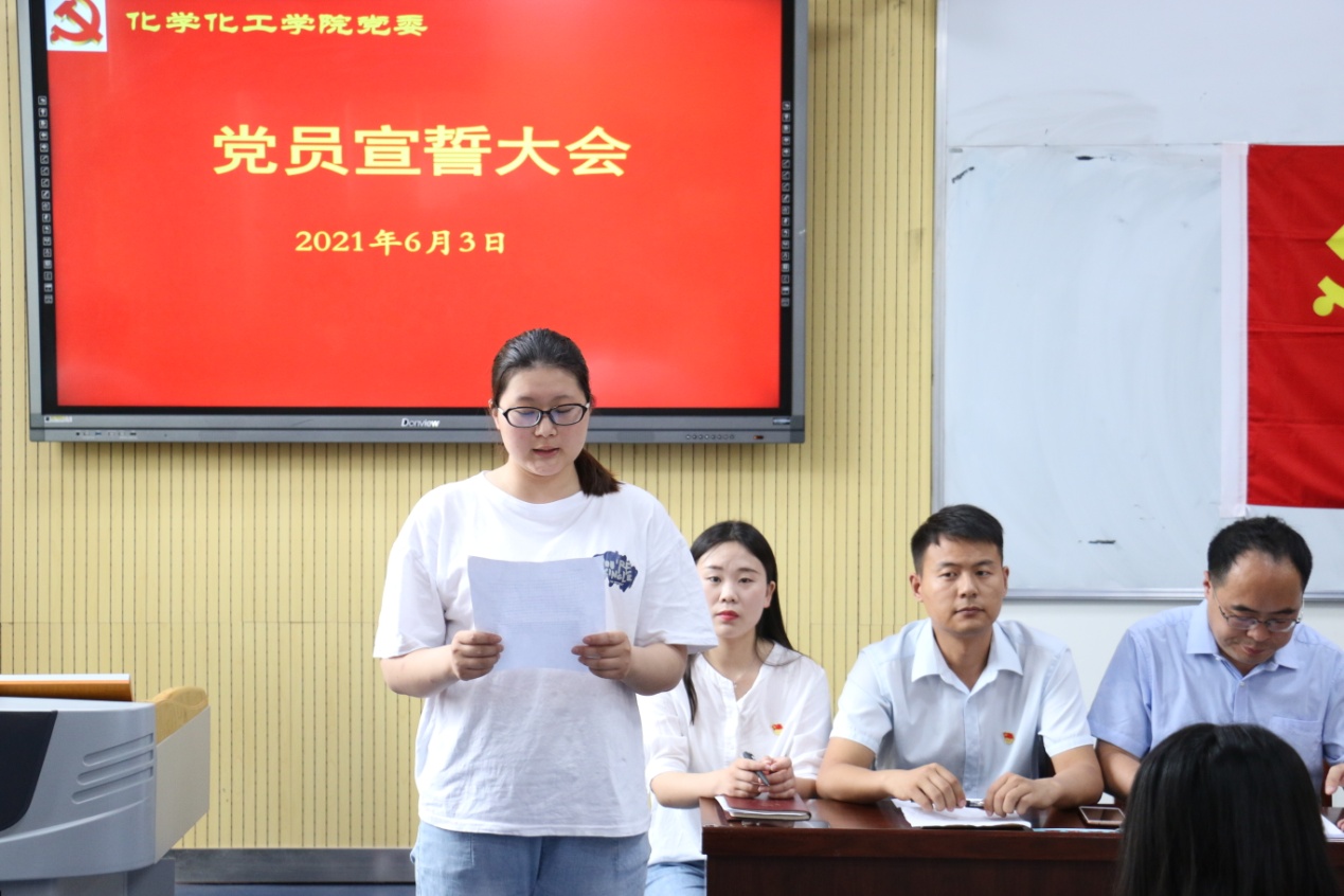 6月3日下午,值此伟大的中国共产党建党100周年庆典临际,beat365正版唯一官方网站分党组织新发展的56名学生党员、1名教师党员在教四T2教室进行隆重的入党宣誓活动。beat365正版唯一官方网站党委书记郭鹏、副书记吴志伟,专职组织员冷向宇,学生支部书记王少单、邓耀辉、赵方方、严赫参加了此次入党宣誓活动。仪式由冷向宇主持。