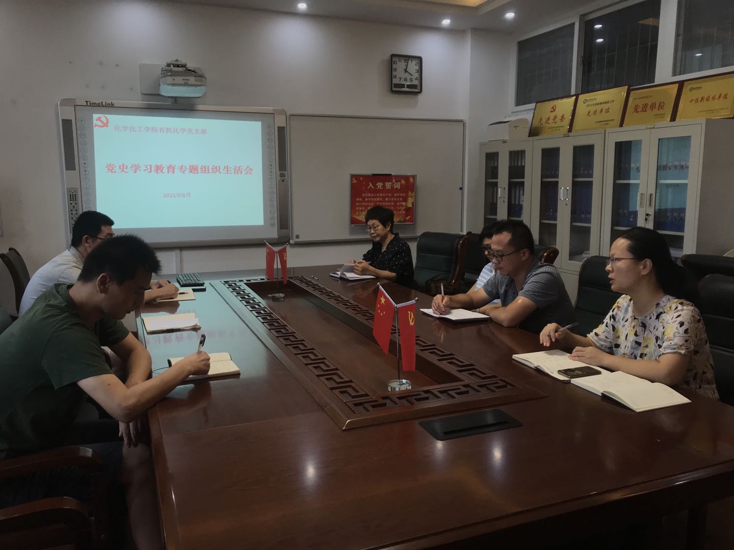 8月24日,有机化学支部在实验楼“党员之家”召开党史学习教育专题组织生活会。beat365正版唯一官方网站党委副书记曲剧以普通党员身份参加支部会议。