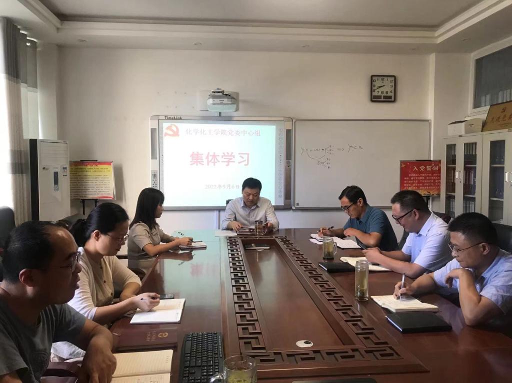 9月6日上午,beat365正版唯一官方网站党委理论学习中心组在化学实验楼“党员之家”会议室围绕统一战线理论开展专题学习。学院党委书记郭鹏,副书记曲剧,副院长曹俊涛、王红军、于永生等参加会议。会议由郭鹏主持。