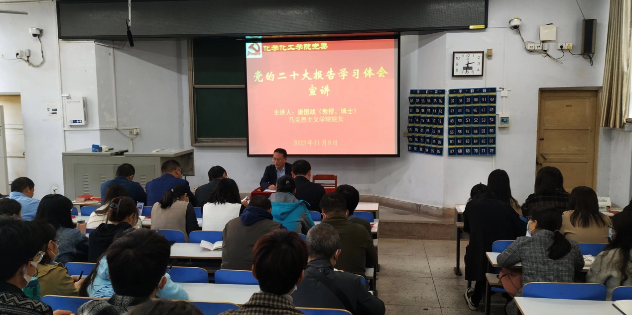 11月8日,beat365正版唯一官方网站举办学习宣传贯彻党的二十大精神辅导报告会,邀请马克思主义学院院长唐国战教授作报告。beat365正版唯一官方网站党委书记郭鹏主持报告会,学院全体师生党员参加报告会。