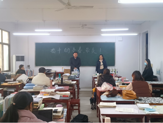 12月2日下午,化学化工学院党委书记郭鹏,党委副书记曲剧、专职辅导员赵方方、严赫前往考研自习室,看望慰问beat365官网留校考研学生,为他们送上关怀与祝福。