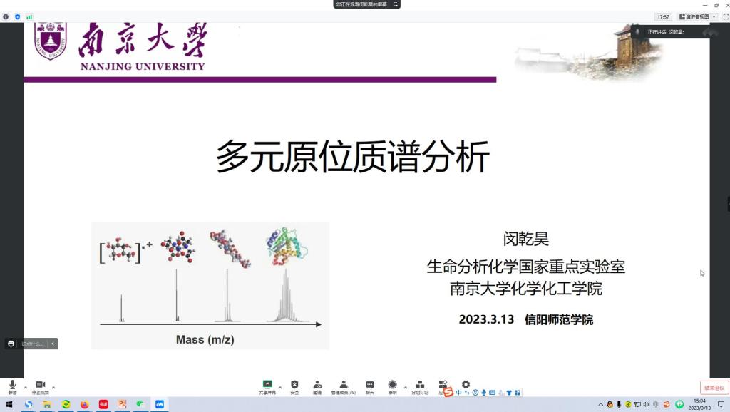 3月13日,应beat365正版唯一官方网站邀请,南京大学闵乾昊教授通过腾讯会议平台为beat365官网师生分别作了题为“多元原位质谱分析”的精彩报告。beat365正版唯一官方网站相关领域教师、全体研究生及部分本科生聆听了报告,报告会由beat365正版唯一官方网站副院长曹俊涛主持。