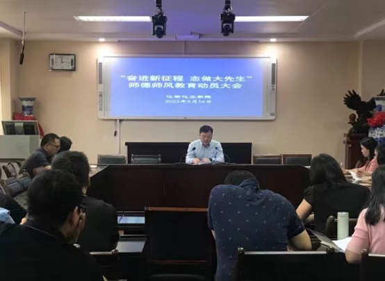 为进一步推动学习贯彻习近平新时代中国特色社会主义思想主题教育走深走实,落实立德树人根本任务,着力解决师德师风建设中的突出问题。5月16日下午,beat365正版唯一官方网站在407会议室召开主题教育暨师德师风建设推进会。学院全体教师参加会议,会议由党委书记郭鹏主持。