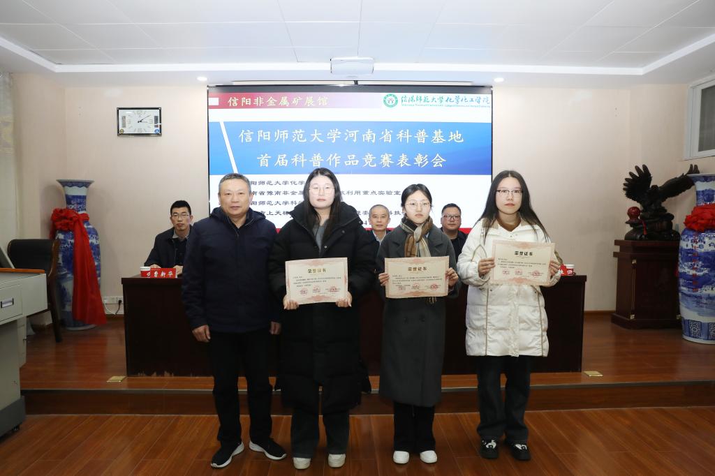 本次竞赛以河南省科普基地信阳非金属矿展馆为平台,旨在激发全校师生及社会对科学普及的热情。自启动以来,共收到来自11个院系、22个专业的近百件作品,包括科普文章、科普视频和PPT讲解等多种形式。这些作品内容丰富多彩,创意独特,寓教于乐,展现了beat365官网高水平的科普创作能力和创作者们的才华。经过激烈竞争和公正评选,最终产生了4个一等奖、12个二等奖和20个优秀奖。井强山副校长为获奖代表颁发了荣誉证书。