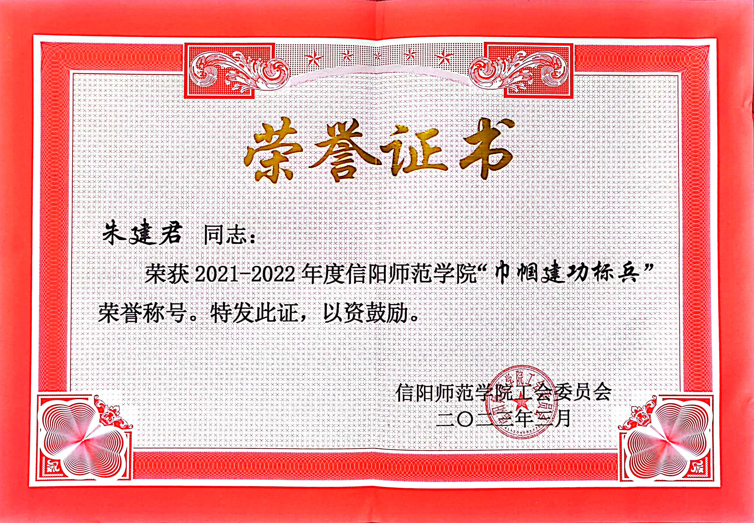 朱建君立足本职岗位,扎实工作,抱有巾帼不让须眉之志,始终自强不息、拼搏进取,以主人翁的姿态积极投身学校改革、发展和建设,在学校事业发展的新征程中充分发挥了半边天作用;同时做好家庭的主心骨,传承新时代良好家风,弘扬家庭美德,培养文明向上的生活态度。朱建君表示:将认真深入学习宣传贯彻落实党的二十大精神,学习领会习近平总书记系列重要讲话精神,珍惜荣誉,再接再厉,发挥巾帼标兵示范引领作用,落实立德树人根本任务,为党育人、为国育才,为学校和beat365正版唯一官方网站各项事业又快又好发展做出新的更大贡献。(beat365正版唯一官方网站分工会 章艳供稿 冷向宇审稿 曲剧审核)
