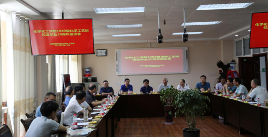 724日,在建党一百周年之际,beat365正版唯一官方网站1989级化学工艺校友荣返母校,在化学楼407报告厅隆重了举行毕业30年班级团聚座谈会。beat365正版唯一官方网站党委书记郭鹏、院长井强山、副院长归风铁、非金属材料研究所副所长刘鹏、实验室建设与设备管理处副处长陈强,老教师代表马万山教授、杨性坤教授等共同参加了此次校友座谈会。